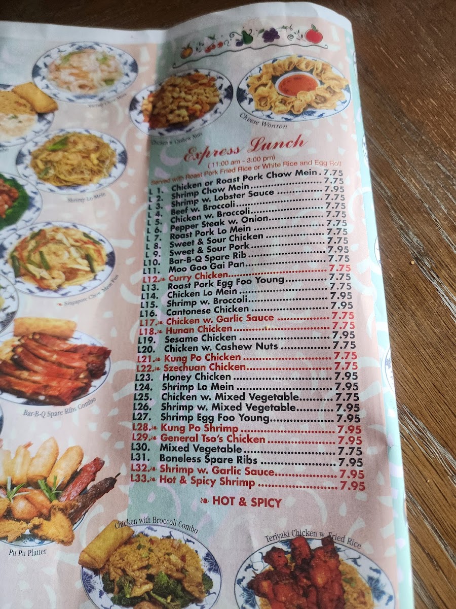 Whether stopping in for a quick Express Lunch or settling in for a full dinner spread, the food complements the unpretentious and welcoming atmosphere of the restaurant. Many dishes, including sweet and sour shrimp or pork fried rice, offer familiar tastes that feel both comforting and accessible, perfect for anyone seeking a satisfying, no-fuss Chinese meal.